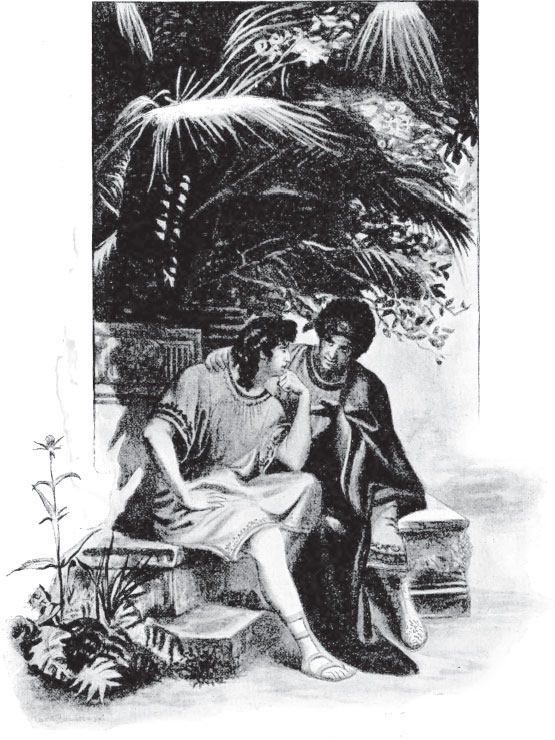 Неподалеку от фонтана располагался небольшой бассейн с чистой водой, питавший поросль тростника и олеандров, таких же, как на берегах Иордана или на побережье Мертвого моря. Между порослью и бассейном, не обращая ни малейшего внимания на солнце, в неподвижном воздухе заливающее все вокруг своими лучами, сидели двое юношей, один лет девятнадцати, а другой – семнадцати, и вели серьезный разговор.