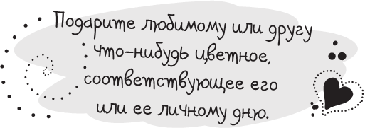 Если вы впервые пользуетесь этими идеями, вероятно, вам понадобится некоторое время, чтобы создать гардероб, включающий все цвета одежды на все времена года. А пока используйте то, что есть у вас под рукой. Необязательно вся одежда должна быть необходимого цвета. Прекрасно подойдет просто шарф, или пояс, или носовой платок, или даже цветное белье. Иногда для напоминания о цветовых вибрациях дня достаточно носить цветную ручку или поставить в вазу несколько цветков. Подарите любимому или другу что-нибудь цветное, соответствующее его или ее личному дню.