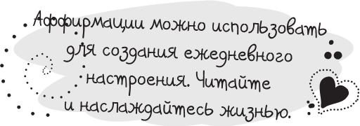 Для каждого личного дня я добавила аффирмацию. Я призываю вас сосредоточиться на этих положительных идеях. Я люблю произносить их по утрам, как только просыпаюсь, готовясь к новому радостному, увлекательному, познавательному дню.