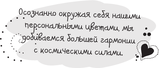 Каждый из нас имеет собственные числовые и цветовые вибрации. Некоторые из этих чисел – такие как наш день рождения – постоянны. У нас также есть временные персональные цвета, меняющиеся с изменением календарных дат. Осознанно окружая себя нашими персональными цветами, мы добиваемся большей гармонии с космическими силами.