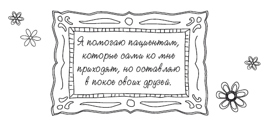 В первые годы практики у меня была пациентка, которая постоянно просила меня навестить ее друзей, находящихся в больнице. Вместо того чтобы просто послать им цветы, она хотела с моей помощью решить их проблемы. Я приезжала к ее больным подругам с магнитофоном, вызывая их изумление, так как они не знали, зачем я здесь и что намереваюсь с ними делать. Так продолжалось до тех пор, пока я не поняла: нельзя работать с людьми, которые сами не проявляют желания со мной встретиться.