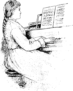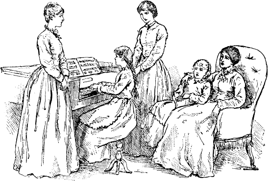 В девять вечера девочки, как обычно, отложили шитьё и перед сном спели несколько песен. Бет, которая умела хорошо играть на стареньком фортепиано, аккомпанировала. Пальцы её легко касались пожелтевших клавиш, извлекая нежные, чистые аккорды, а девочки пели незатейливые песни. Голос Мег звучал чище, чем флейта, и они вместе с матерью вели за собой маленький хор. Пение Эми смахивало на уютные рулады сверчка, а Джо вообще пела какие-то свои особые мелодии, и голос её явно не способствовал слаженности хора.