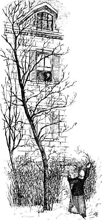 Конечно, Джо никогда бы не решилась дерзить почтенному мистеру Лоренсу, однако попасть в гости к Лори ей действительно хотелось. И вот сегодня ей показалось, что настал подходящий момент. Она заметила, что мистер Лоренс-старший куда-то уехал. Это облегчало задачу. Прокопав тропинку в снегу, Джо подошла вплотную к изгороди и принялась внимательно осматривать сад и дом.