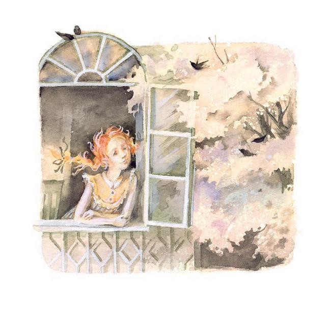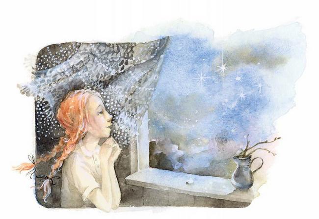 Аня стояла на коленях у окна, забыв обо всем на свете, кроме окружавшей ее красоты, пока не вздрогнула, почувствовав на своем плече чью-то руку. Маленькая мечтательница не слышала, как вошла Марилла.