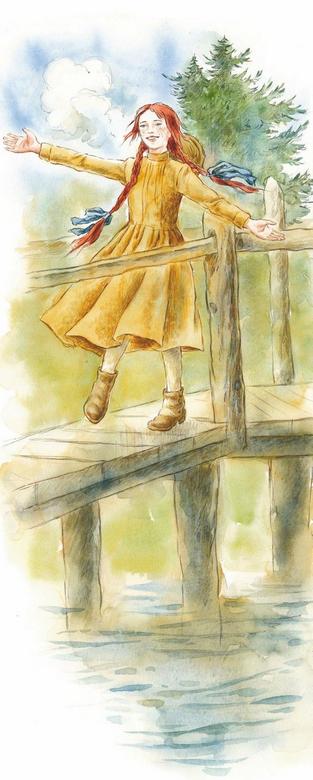 По этому мосту Энни, пританцовывая, проходила к покрытому лесом холму, где под прямыми елями и пихтами властвовал вечный сумрак, а из цветов росли лишь мириады нежных июньских колокольчиков – самых робких и обаятельных из всех лесных цветов, да кое-где виднелись воздушно-бледные звездоцветы, похожие на призраков прошлогодних цветов. Среди деревьев поблёскивала, как серебро, тонкая паутина, а ветви пихт, раскачиваясь, казалось, вели друг с другом интересные разговоры.