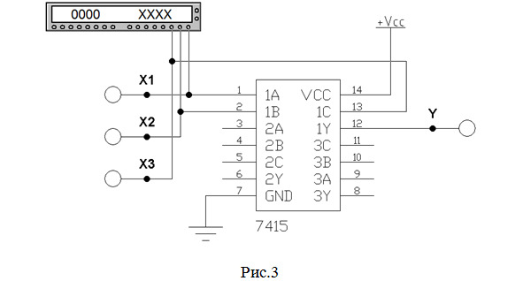 7. Показать работу выбранного элемента 3И данной микросхемы для всех комбинаций входных сигналов. Убедиться, что элемент работает в соответствии с составленной таблицей истинности. Результат показать преподавателю.