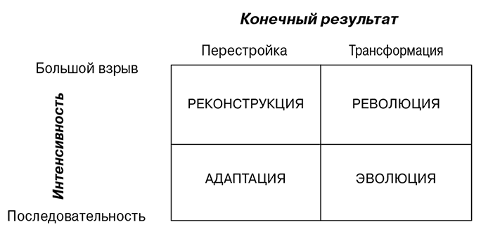 Изменения превратились в непременную реакцию на все «недуги» организации. Способность организации к изменению – ключевой фактор ее успеха в краткосрочной и долгосрочной перспективе. В будущем самыми преуспевающими станут те организации, которые способны стремительно и эффективно осуществлять фундаментальные, долгосрочные изменения, полностью трансформирующие систему.