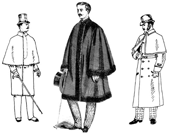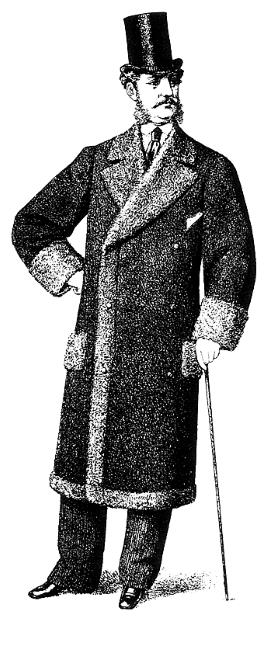 Верхняя одежда человека второй половины XIX века отличалась одновременно строгостью и разнообразием. В 1850-1860-х годах носят однобортное пальто палмерстон с широкими рукавами без манжет, с широким воротником, лацканами и клапанами на карманах. Популярен честерфилд и инвернесс — однобортное просторное пальто до колен с широкой пелериной из гладкого темного сукна, шерсти или твида. Носят пальто Ольстер — двубортное или однобортное, с пелериной, в 1870-х, почти достигавшее щиколоток. Двубортное пальто гладстон тоже имело пелерину, но было короче и оторочено каракулем. У молодых спортивных мужчин с 1880-х годов популярно прямое короткое (чуть длиннее пиджака) коверкотовое пальто. Пальто имело боковые шлицы, потайную глухую застежку спереди, отделочные швы, карманы с клапанами на бедрах, кокетку с кантом и нагрудный кармашек. Оно как бы говорило: «Не смотрите, что я короткое, зато вот какое сложное. Вид имею очень мужественный и спортивный. Выбирайте меня».
