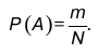Вероятностью Р события А при этих условиях будем считать отношение числа случаев m, в пределах которого происходит событие А, к числу N равновозможных событий.