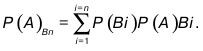 В формуле предполагается, что событие А может произойти только с одним из n несовместимых событий B1….,Bn, то есть группа событий А и B1, или А и B2 и т. д. Любая группа из этого ряда равносильна появлению события А.