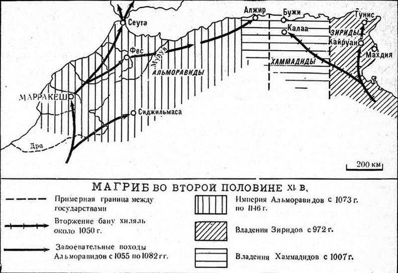 Сложилась легенда, согласно которой бедуинов наслал на Ифрикию[12] египетский халиф из шиитской династии Фатимидов аль-Мустансир (1036–1094), разгневанный решением ее правителей Зиридов[13] отречься от шиизма и отложиться от Каира. И сделал он это якобы по совету хитрого визиря аль-Йазури (на самом деле человек с таким именем занимал должность главного судьи египетской столицы), решившего таким образом заодно отделаться от беспокойных кочевников, переселившихся в Верхний Египет после восстания Карматов[14] на Аравийском полуострове. По другой версии, хитрец сам вызвал аравитян издалека, чтобы наказать с их помощью Зиридов.