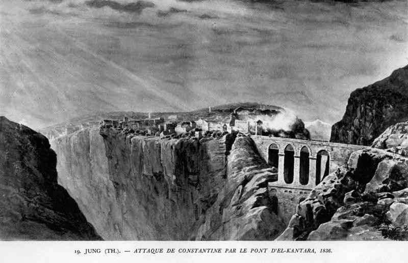 Мост, построенный в 1792 г. над рекой Руммель, по которому французы пытались ночью прорваться к Константине (1836 г.). Источник: Julien Ch.-A. Histoire de l’Algérie contemporaine. Paris: PUF. 1964.