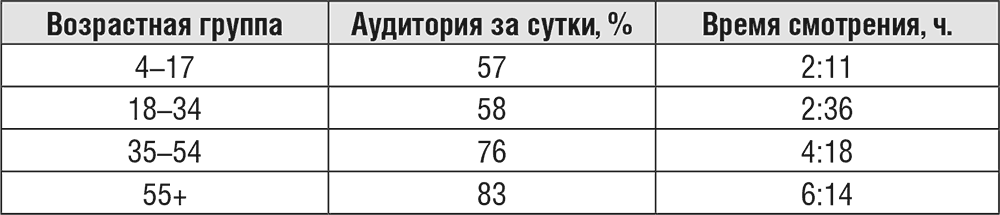 Таблица 4. Динамика аудитории и телесмотрения по возрастным группам