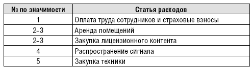 Основные расходные статьи региональных телеканалов
