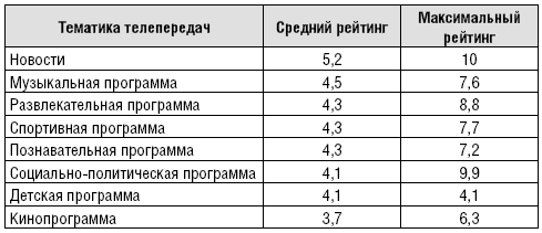 Жанровая структура эфира. Структура программной сетки телеканала так или иначе должна коррелировать с интересами и предпочтениями аудитории. В регионах, по данным исследовательских компаний, интересы зрителей местных каналов явно смещены в сторону информационного вещания в соответствии с табл. 15.