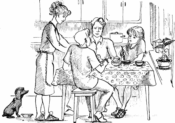 Отец молча прислушивался к их болтовне, готовя себе замысловатый бутерброд. Пудель Ганнибал сидел на середине кухни, являя собой образец воспитанной собаки. Но, увы, его, как всегда, ожидала только тарелка со вчерашним супом.