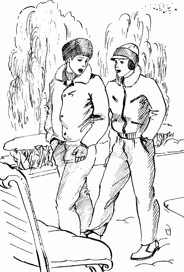 Кирилл с Колькой прошли заснеженной дорожкой к небольшому дворику, где под слоем снега нашлась скамейка. Колян сразу плюхнулся на нее и оказался в сугробе замысловатой формы. Кирилл остановился рядом и предложил: