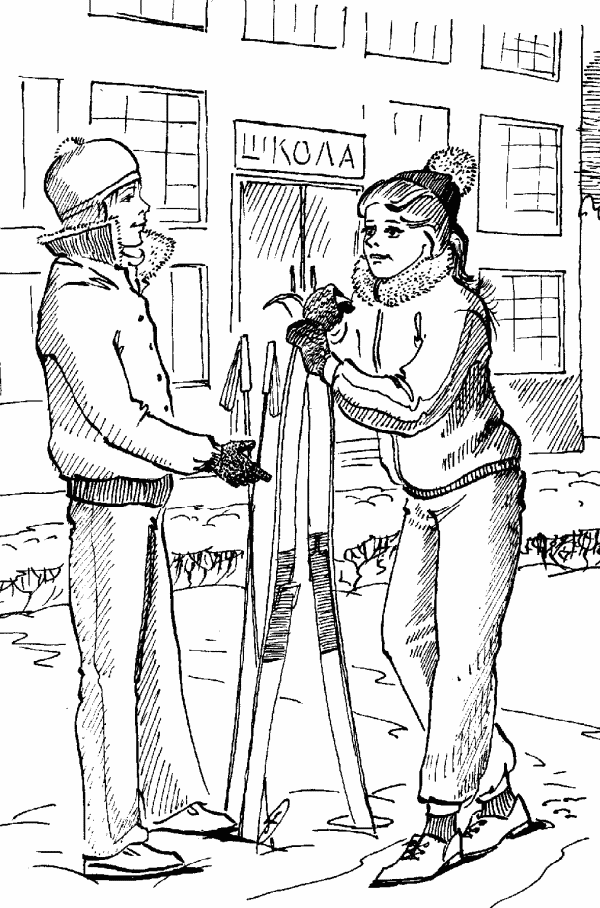 На следующий день в школе Кирилл с Таней вспоминали лыжную прогулку, смеялись.