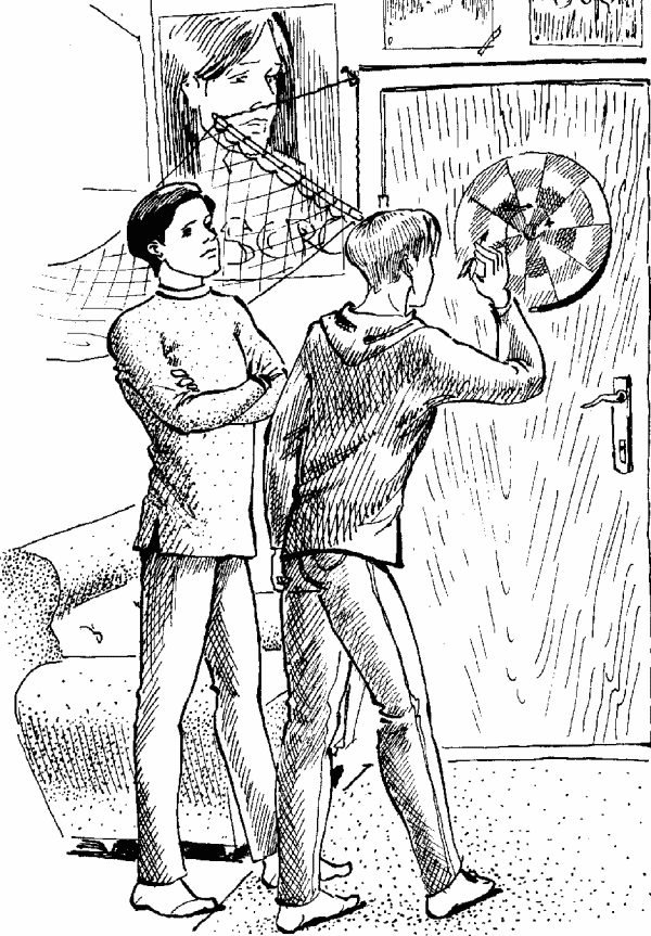 Оборудованная Колькой комната действительно имела вид логова. На стенах развешаны плакаты, большая часть которых посвящена любимым хозяином кумирам-приколистам – Бивису и Баттхеду, а над спартанской кроватью висело авторское «высокохудожественное» произведение – портрет чудовища из фильма «Чужой». Рядом с кроватью, на тумбочке, стоял старый телевизор, на двери – дартс с воткнутыми в него несколькими разноцветными дротиками. В середине комнаты к потолку был подвешен гамак.