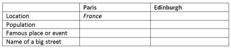 Paris is the capital of France. It’s a big city. The population is over two million. There are a lot of good French restaurants. The coffee is very good there! The River Seine is in Paris. There is a famous tower called the Eiffel Tower. A big street called ‘Champs-Élysées’ is near the Eiffel Tower.