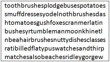 Toothbrushes – beaches – brushes – buses – classes – dishes – dresses – foxes – hairbrushes – matches – potatoes – tomatoes – watches