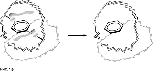 Теперь перейдем к аналогичной химической задаче. Размыкать и замыкать циклические молекулы химия умеет хорошо, но не существует такого пинцета, который позволил бы незамкнутую молекулу «просунуть» в замкнутый цикл (второй этап на рис. 1.3). Поэтому для решения проблемы пришлось искать другие пути.