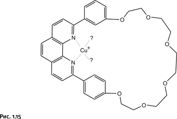 Далее к кольцевой молекуле добавили соединение, содержащее катион Cu+. Естественно, этот катион сразу образовал координационные связи с двумя атомами N (рис. 1.15).