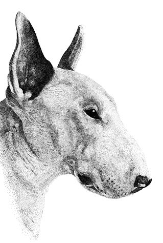 В английском тексте указан конкретно «bull terrier». Порода буль-энд-терьеры была выведена в Англии от бульдогов и терьеров. Эти быстрые и злобные собаки участвовали в собачьих боях и в соревнованиях по «охоте на крыс» на скорость. В 1835 году этот вид развлечений был запрещен правительством страны, спрос на породу упал. Но в 50-х годах XIX века некто Джеймс Хинкс из Бирмингема начал выводить белого бультерьера. Он скрестил бультерьера с далматинами и белыми английскими терьерами и получил гармоничных и облегченных, но мощных и выносливых собак, среди которых были особи с белым окрасом. Содержать белого бультерьера считалось у студентов и преподавателей Оксфордского университета особым шиком. В начале XX века породу зарегистрировали в Британии.