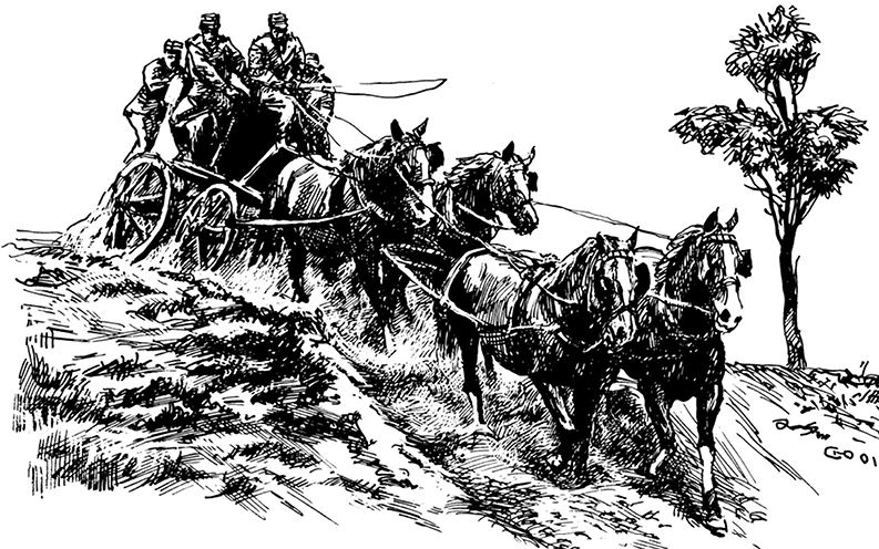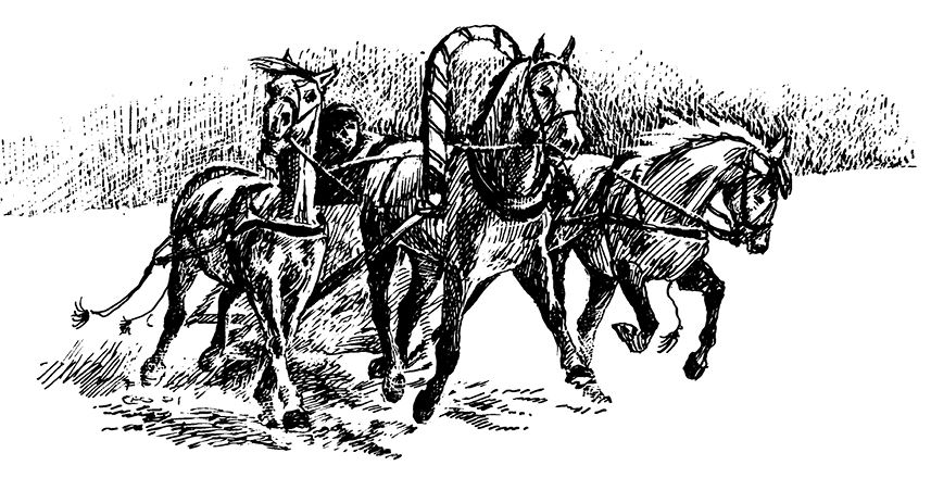 В английском тексте использован точный спортивный термин – «…your four-in-hand». Что же это за «четыре-в-руке»? Кроме верховых скачек всегда проводились турниры и соревнования с разными видами запрягания лошадей. Это может быть: одна лошадь, простая пара, тандем (лошади запряжены друг за другом), юникорн (запряжена пара, а перед ней – ведущая лошадь) а также four-in-hand, или четверик: попарно запряжены четыре лошади. На некоторых соревнованиях встречаются шесть и даже восемь запряженных лошадей.
