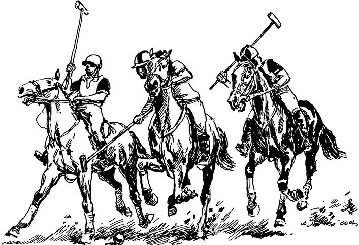 А упомянутая игра в поло в Англии – это командная игра с мячом, в которой участники играют верхом на лошадях. Мяч гоняют по полю специальной клюшкой, цель игры – поразить ворота соперника. Игра была завезена (в числе прочих экзотических штучек) в Англию из Индии в начале XIX века и быстро стала популярной. На своей исторической родине она называлась «човган», човган-поло.