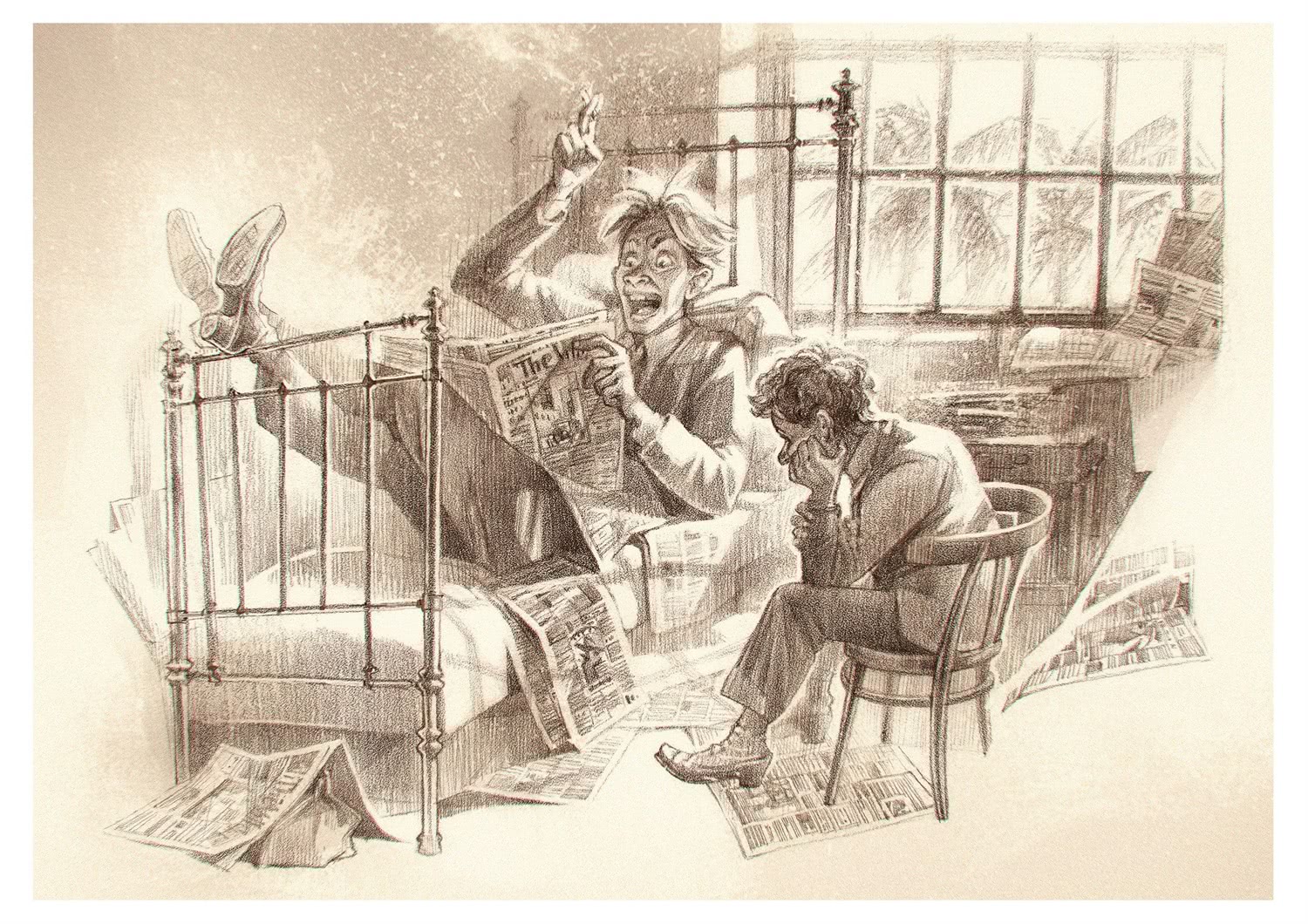 Тесную, тонущую в табачном дыму трехдолларовую комнату с водой на нижнем этаже заполоняли газеты. Газеты лежали на столе, придвинутом к окну, за которым шелестела пальмами тихая тенистая улица. Газеты располагались на обеих железных кроватях, стоявших справа и слева от этого стола. Газеты скрывали саквояж, стоявший за облезлой дверью, и устилали пол, подоконник и стулья.