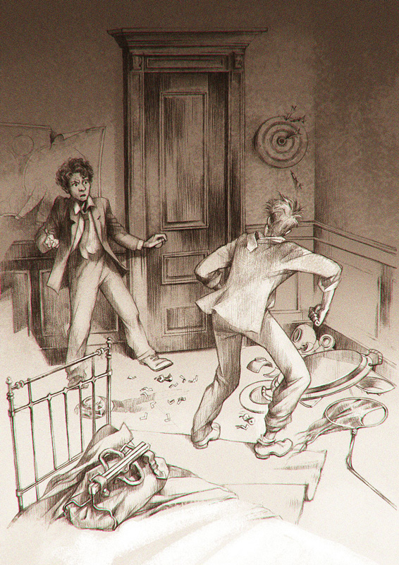 Его слова подтвердил вылетевший из комнаты туфель, и оба отскочили, прижавшись к стене.