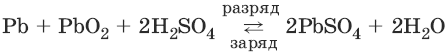 РbO2(тв) + 4H+ + SO42- + 2ē → PbSO4(тв) + 2Н2O