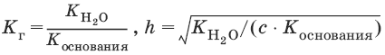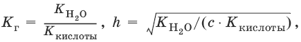 Степень гидролиза h – отношение концентрации гидролизованных молекул к общей концентрации растворенных молекул.