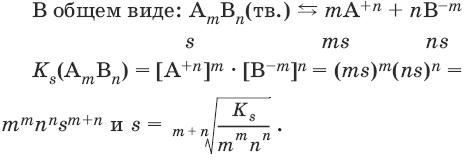 Ks(AmBn) = [А+n]m • [В-m]n.