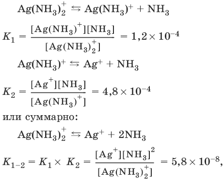 где K1, К2, К1_2 называются константами нестойкости и характеризуют диссоциацию комплексов: чем меньше константа нестойкости, тем меньше диссоциирует комплекс, тем он устойчивее.