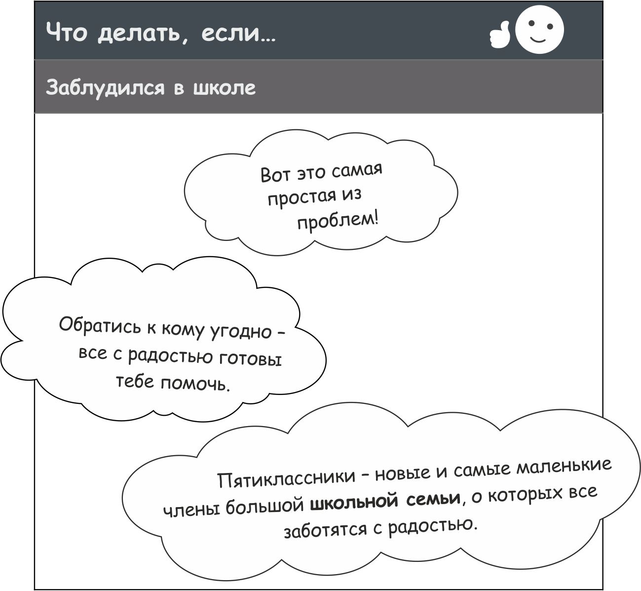 В конце первого дня в новой школе можно отметить на шкале, что тебе понравилось или не понравилось, вызвало беспокойство или даже страх, а что заинтересовало и увлекло.