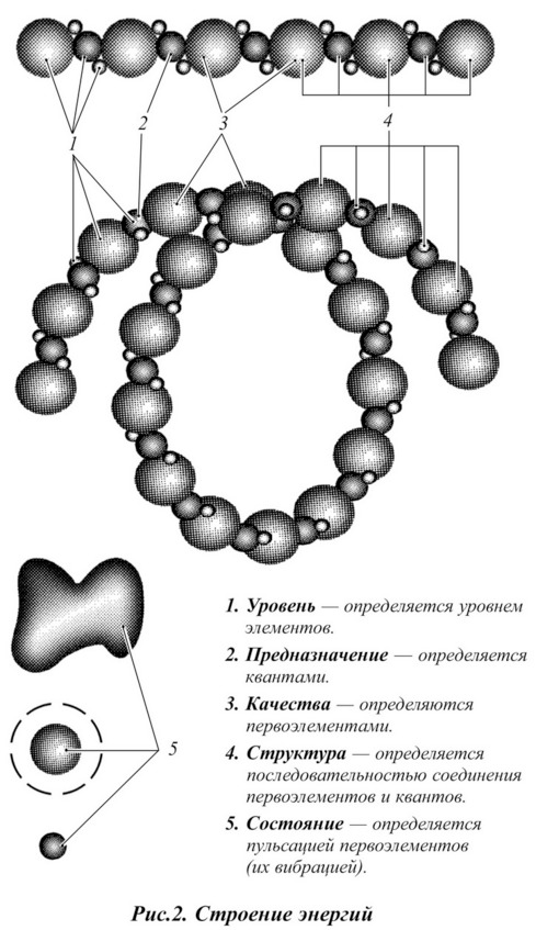 Энергия – состоит из первоэлементов, квантов и квантовой основы, среднее соотношение которых примерно равно 1:1:2. При создании энергетических систем чаще всего используются простые энергии, включающие в себя около 400 000 элементов и сопоставимые по объему с электроном.