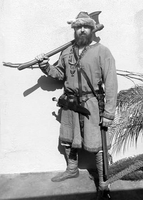 Савка Холмитин гулящей человек: ростом высок, чермен, борода велика. Платия на нем: кафтан лазорев настрафиль, нашивка шелк червъчат, кафтан бораней наголной да сермяга бела, пугвици на ней хамьянные» (М.И. Давыдов «Погонная память 1596 года…»).