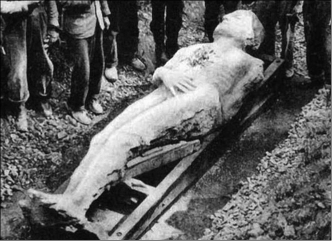 Эта история произошла в конце 60-х годов XIX века. 15 октября 1869 года рабочие обнаружили на ферме в Кардиффе древнюю скульптуру – трехметрового истукана, сжимавшего живот правой рукой. Казалось, что этот гигант был запечатлен в момент смертельного ранения. Другая версия оказалась совсем невероятной: великан был не скульптурой, а древним окаменением, то есть мертвецом. Что навело на такую странную мысль? Поразительная натуралистичность найденного великана: все детали его облика в точности копировали человеческое тело.