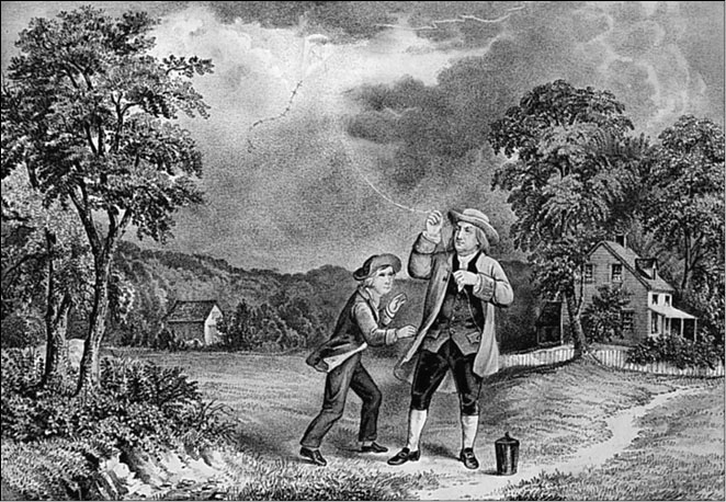Бенджамин Франклин получает электрический заряд с помощью воздушного змея