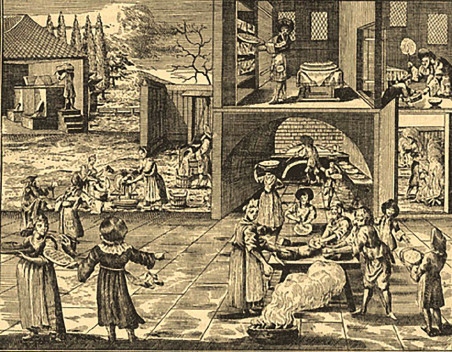 Так как при исходе из Египта евреи не успели запастись квашеным хлебом, то в память об этом событии запрещено не только его есть в течение семи дней праздника Пасхи, но и держать квашеное тесто в своих помещениях. Поэтому в древней Иудее обыкновенно ели мацу – опреснок, хлеб, пироги или лепешки из не квашеного теста. В маце должна быть только мука и холодная вода, заготовленная со вчерашнего дня. Процесс приготовления мацы представлен на литографии (рис. 2) [6].