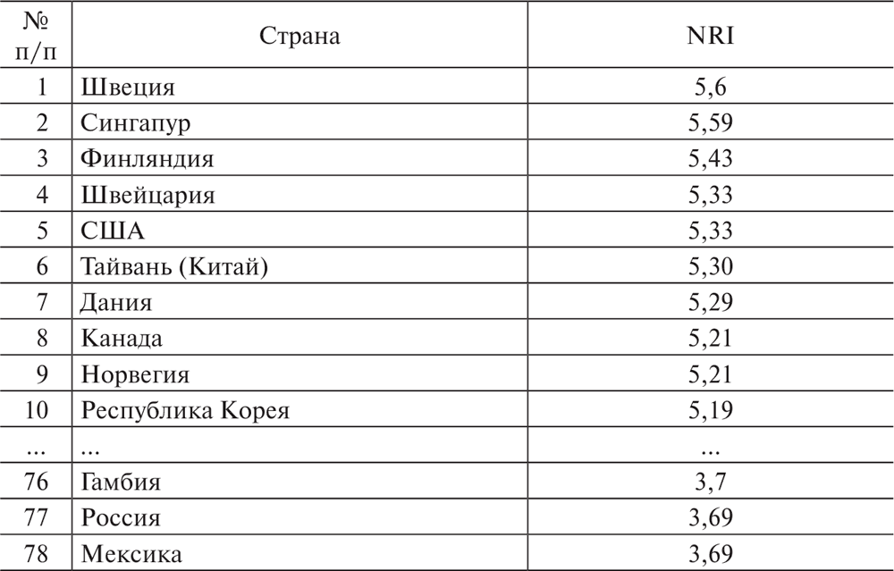 Таблица 1.1. Рейтинг стран по индексу NRI[2]