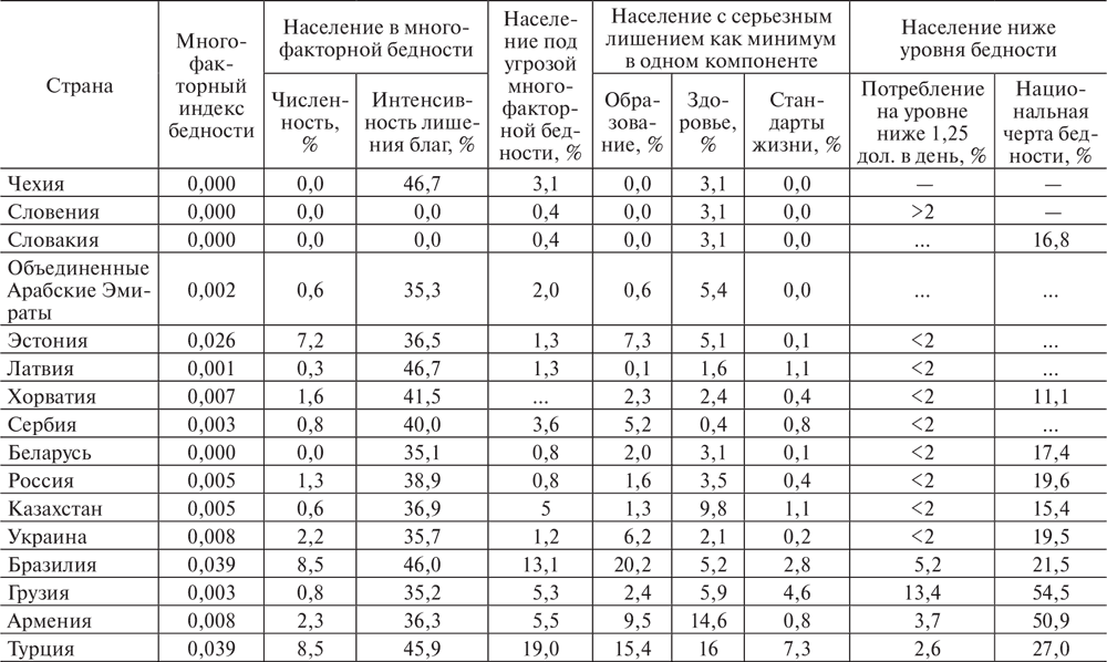 Таблица 1.2. Многофакторный индекс бедности по выборке стран[8]