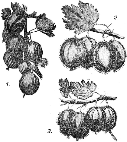 Рис. 7. Сорта крыжовника: 1 – красный призовой; 2 – промышленный; 3 – нейвидский.