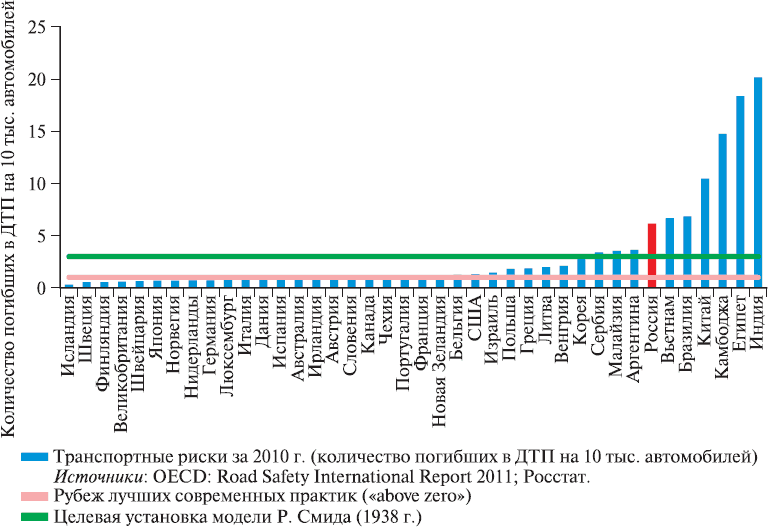 Случилось, однако, так, что в первой половине 2013 г. наш Институт оказался вовлеченным в подготовку аналитического доклада Экспертного совета при Правительстве Российской Федерации, посвященного проблемам безопасности дорожного движения и путям их решения. Эта деятельность была связана, в частности, с определенным переосмыслением перспектив имплементации в России лучших мировых практик, а также существенным расширением междисциплинарного горизонта при изучении динамики и структурных различий транспортных рисков.