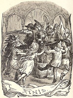 What should it be? She thought of Arabs with their tents and horses, and Leonidas told her of Red Indians with their war-paint, and little Negroes dancing round the sugar-boiling, till her head began quite to swim and her ears to buzz; and all the children she had seen and she had not seen seemed to come round her, and join hands and dance. Oh, such a din! A little Highlander in his tartans stood on a whisky-barrel in the middle, making his bagpipes squeal away; a Chinese with a bald head and long pigtail beat a gong, and capered with a solemn face; a Norwegian herd-boy blew a monstrous bark cow-horn; an Indian juggler twisted snakes round his neck to the sound of the tom-tom; and Lucy found herself and Leonidas whirling round with a young Dutch planter between them, and an Indian with a crown of feathers upon the other side of her.
