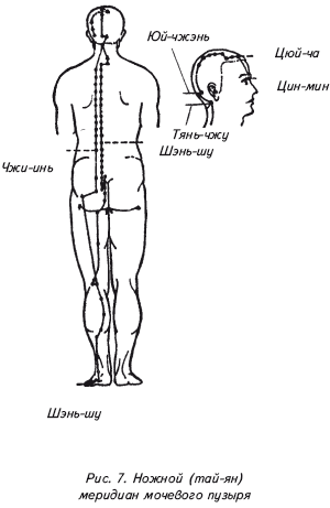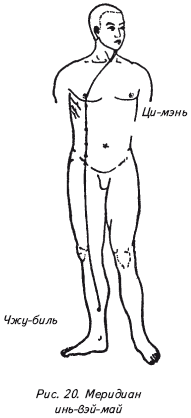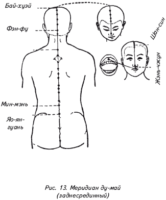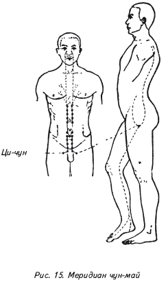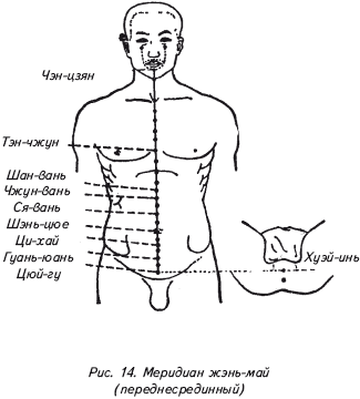 Помимо этих основных ходов – двенадцати меридианов для течения внутренней ци (жизненной энергии) – имеется еще восемь других важных меридианов. Эти восемь меридианов не связаны прямо с внутренними органами и не ограничиваются последовательностью двенадцати меридианов. Они имеют специальные пути и текут необычно, поэтому называются восемью экстраординарными меридианами (или чудесными). Это – ду-май (середина спины), жэнь-май (середина передней части), чун-май, дай-май, инь-цяо-май, ян-цяо-май, инь-вэй-май и ян-вэй-май. Когда ци (жизненная энергия) и кровь текут в двенадцати меридианах в избыточном количестве, то происходит сброс их в восемь экстраординарных каналов для хранения.