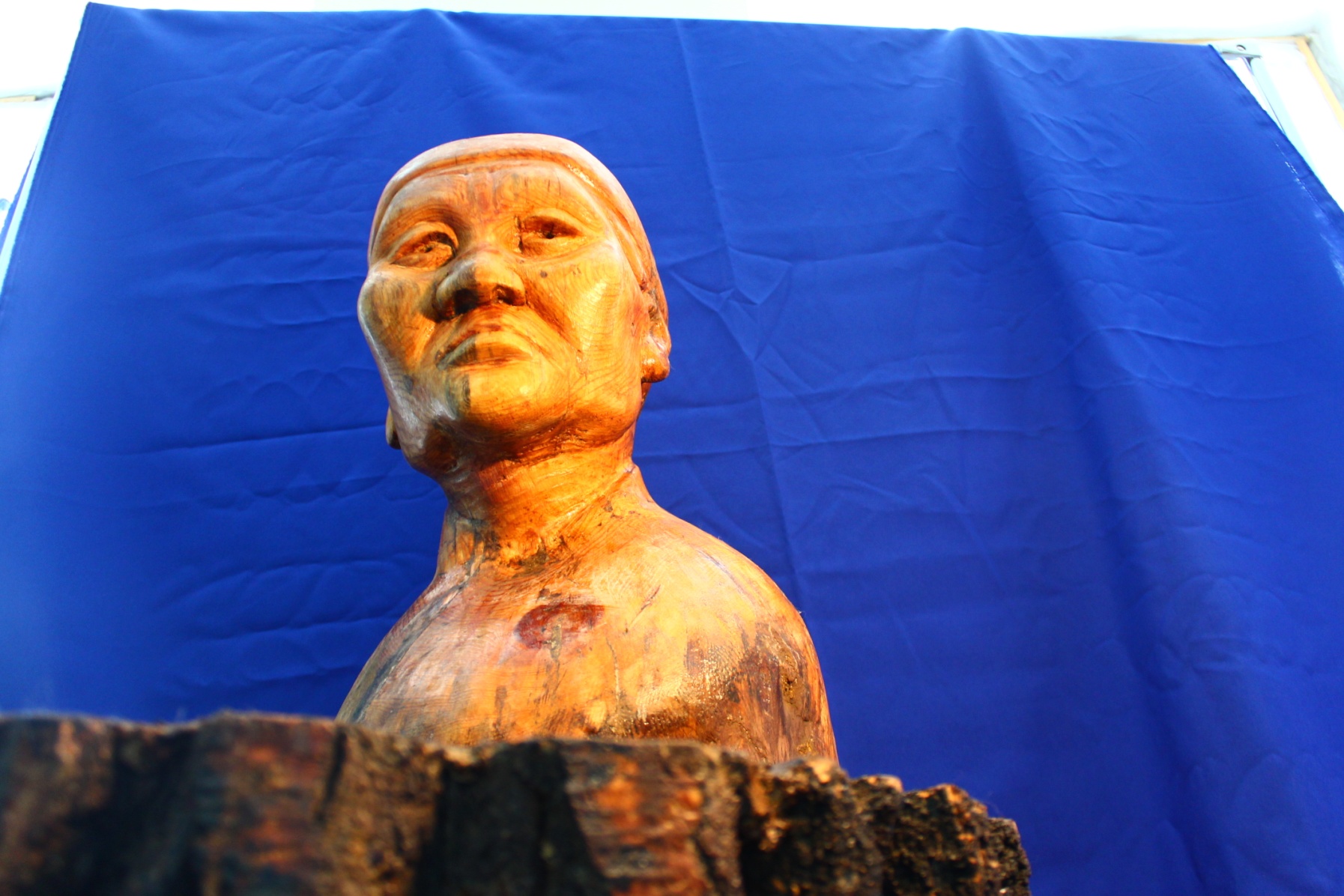 Вот портрет родной бабушки Курмана. Бюст помещен на поверх-ности символической Земли. Мать – земля и мать человеческая. Всмотритесь, сдаются ли такие когда-нибудь? Покорятся ли они судьбе? Можно ли сломить их волю? Отнять свободу? Вглядитесь в эту пос-тановку головы, в глаза этой женщины и вы получите ответ. Таков ответ и внука этой бабушки, который унаследовал ее прекрассное качество. Бог создал нас свободными, потому что свободен Он сам.