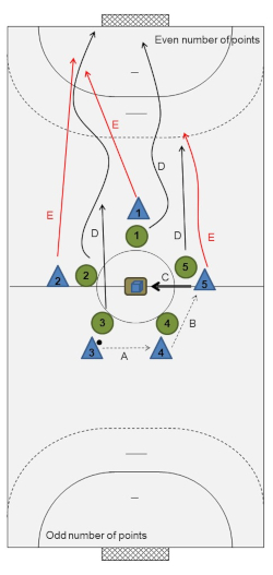 → If the number of points is odd (1, 3, or 5), the teams play towards the upper side line (as shown in the figure).